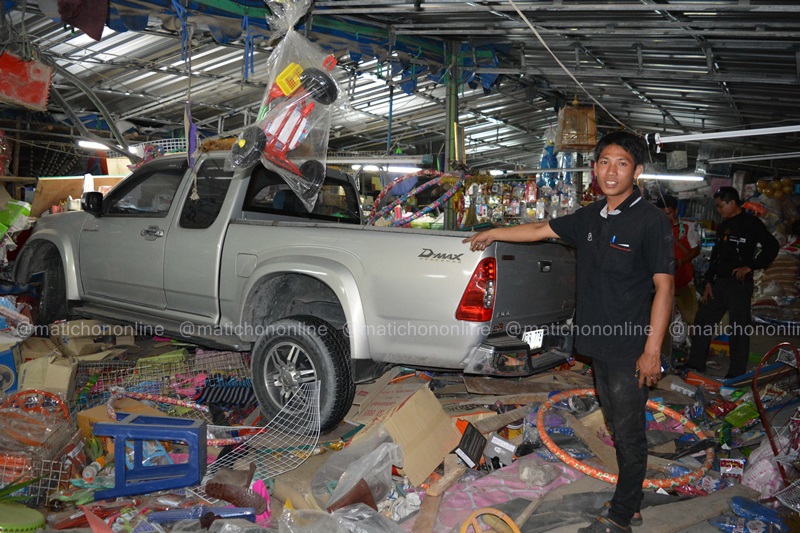 ทางด้าน นายสมพงษ์ สิงห์ทา คนขับรถกระบะกล่าวว่า ขับรถกระบะจะกลับที่พัก ซึ่งอยู่ใกล้กับร้าน 20 บาท โดยขับมาทางเทศบาลตำบลเหมืองมุ่งหน้าถนนสุขุมวิท เมื่อมาถึงที่เกิดเหตุได้มีรถวิ่งออกมาจากข้างทางตัดหน้า พร้อมส่องไฟหน้ามาด้วย ตกใจจึงได้เหยียบเบรคกระทันหัน ทำให้เสียหลักพุ่งเข้าร้าน 20 บาท ทำให้ทรัพย์ภายในร้านเสียหายจำนวนมาก และยังเฉี่ยวชนเด็กหญิงอายุ 4 ขวบลูกเจ้าของร้านด้วย ภาวนาอย่าให้เป็นอะไรมาก ส่วนทรัพย์สินที่เสียหายยอมชดใช้ให้ทั้งหมด